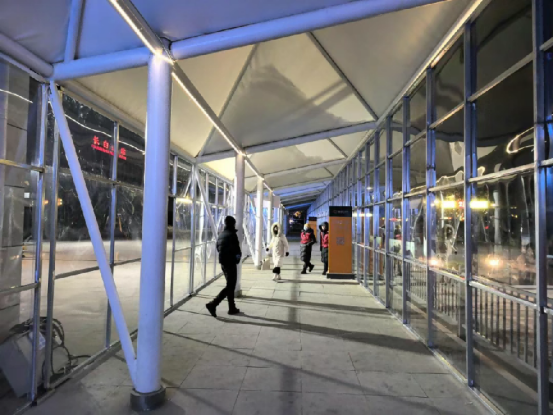 此外,针对冬季寒冷多雪的天气特点,长白山旅游股份公司在长白山站公交停车场、北景区游客集散中心出租车、网约车停车场均搭建了暖心候车棚,为游客遮风挡雪,让出行过程暖意融融。志愿者团队坚守服务岗位直至最后一班高铁到站,确保旅游咨询、交通引导等服务全天候不打烊,用细致贴心的服务温暖每一位游客的出行之路。